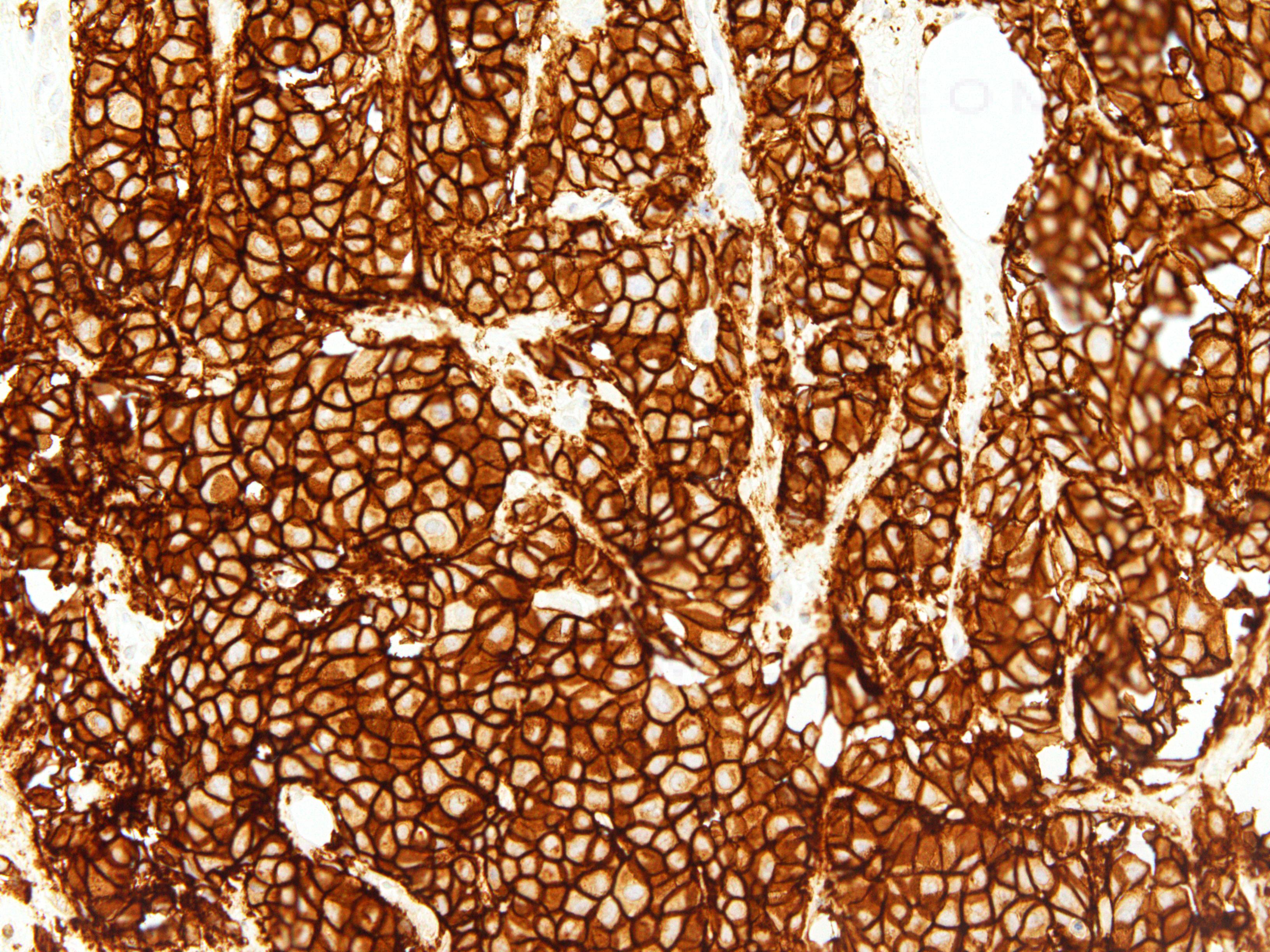 The Her2/Neu (c-erbB-2) proto-oncogene is a transmembrane receptor tyrosine kinase that is clinically indicated in a number of carcinomas. Overexpression of the c-erbB-2 protein has been associated with ductal breast cancer, as well as pulmonary and gastric adenocarcinomas. A correlation between Her2 and p53 has also been documented, as overexpression of both proteins has been associated with early invasion and metastasis in bladder cancer.