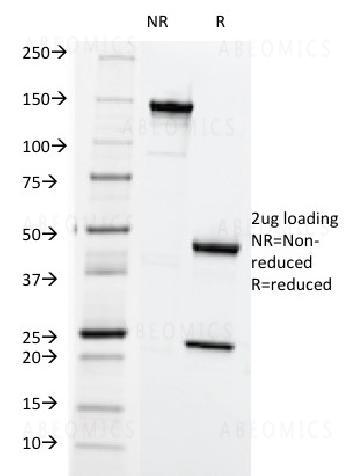 Fig. 1: SDS-PAGE Analysis Purified HLA-ABC Mouse Monoclonal Antibody (SPM419). Confirmation of Purity and Integrity of Antibody.