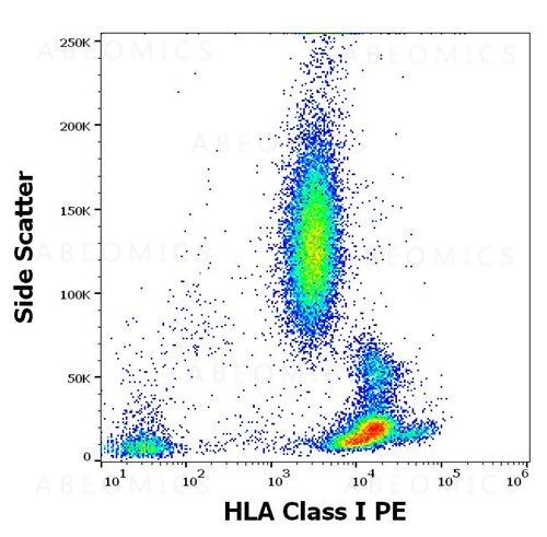 Figure 1: Flow cytometry surface staining pattern of human peripheral whole blood stained using anti-HLA Class I (W6/32) PE antibody (concentration in sample 1.67 μg/ml).