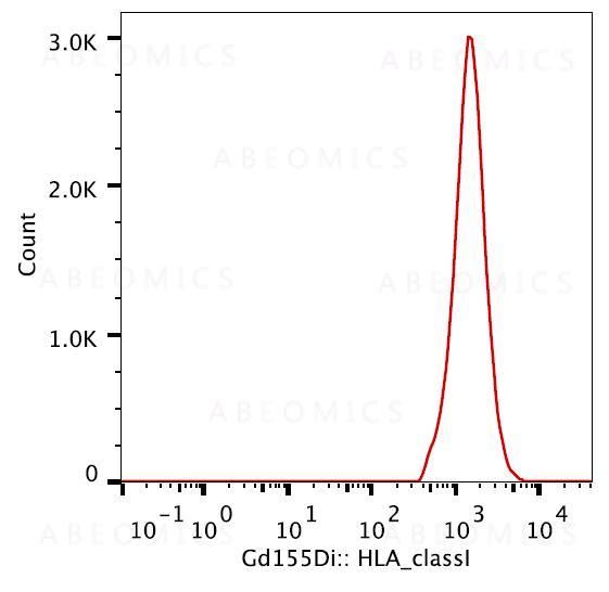 Figure 1: Surface staining (mass cytometry) of PBMC after Ficoll-Paque separation with anti-HLA-class I (W6/32) Gd155. Gated on DNA.