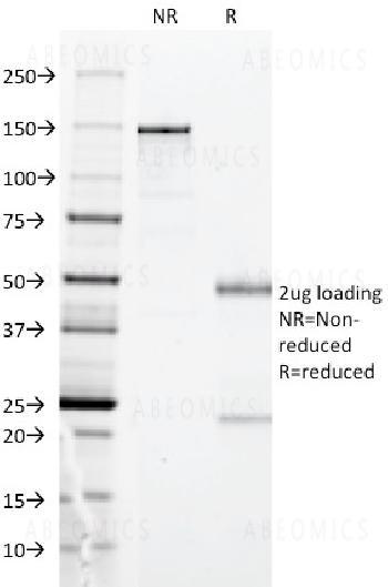 Fig. 1: SDS-PAGE Analysis Purified HLA-DP Mouse Monoclonal Antibody (BRA-FB6). Confirmation of Integrity and Purity of Antibody.