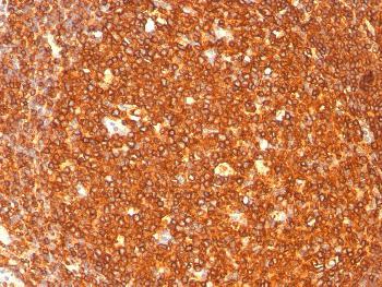 Fig. 1: Formalin-fixed, paraffin-embedded human Tonsil stained with HLA-DR Mouse Monoclonal Antibody (SPM289).