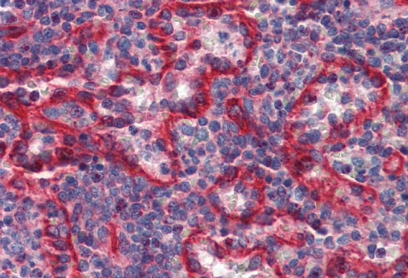 Figure 1: Immunohistochemistry staining of human spleen (paraffin sections) with anti-HLA-E (clone MEM-E/07).