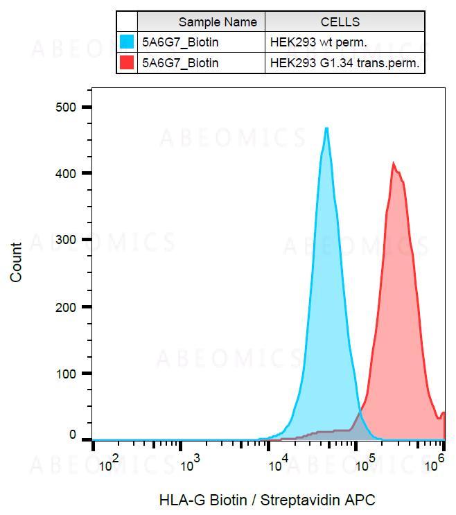 Figure 1: Surface staining of HLA-G in HLA-G1 transfectants with anti-HLA-G (5A6G7) biotin / streptavidin-APC.