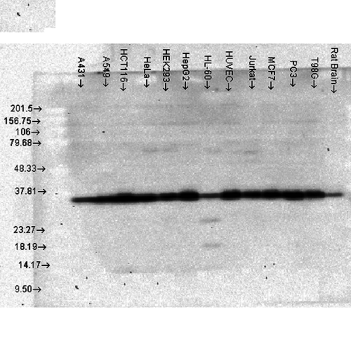 WB (1:2000), ICC/IF (1:100); optimal dilutions for assays should be determined by the user.