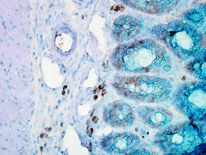 Figure1 : Mouse Anti-Hsp90 beta Antibody [Hyb-K3701] used in Immunohistochemistry (IHC) on Mouse inflamed colon