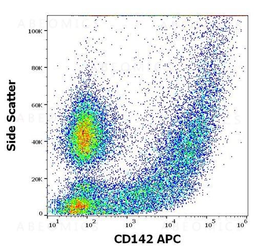 Figure 1: Flow cytometry surface staining pattern of human peripheral whole blood spiked with A431 cells stained using anti-human CD142 (HTF-1) APC antibody (10 μl reagent / 100 μl of sample - peripheral whole blood spiked with A431 cells).