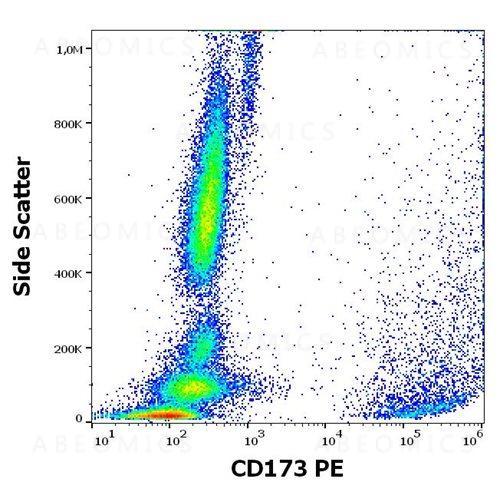 Figure 1: Flow cytometry surface staining pattern of human peripheral whole blood stained using anti-human CD173 (MEM-195) PE antibody (10 μl reagent / 100 μl of peripheral whole blood).