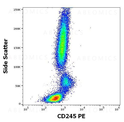 Figure 1: Flow cytometry surface staining pattern of human peripheral whole blood stained using anti-human CD245 (DY12) PE antibody (10 μl reagent / 100 μl of peripheral whole blood).