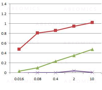 Figure 1: ELISA analysis in 1000x diluted human plasma with mouse monoclonal antibody (0.016-10 ug/mL)