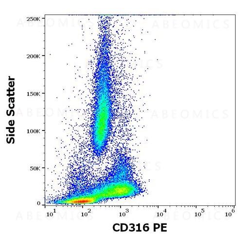 Figure 1: Flow cytometry surface staining pattern of human peripheral whole blood stained using anti-human CD316 (8A12) PE antibody (10 μl reagent / 100 μl of peripheral whole blood).
