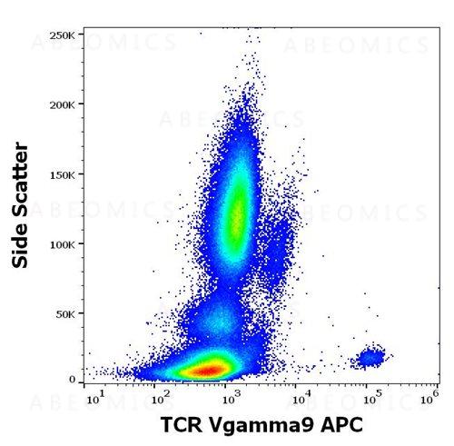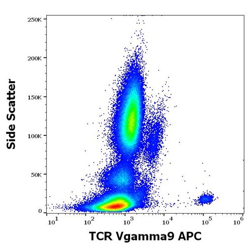Figure 1: Flow cytometry surface staining pattern of human peripheral whole blood stained using anti-human TCR Vgamma9 (B3) APC antibody (concentration in sample 1.67 μg/ml).