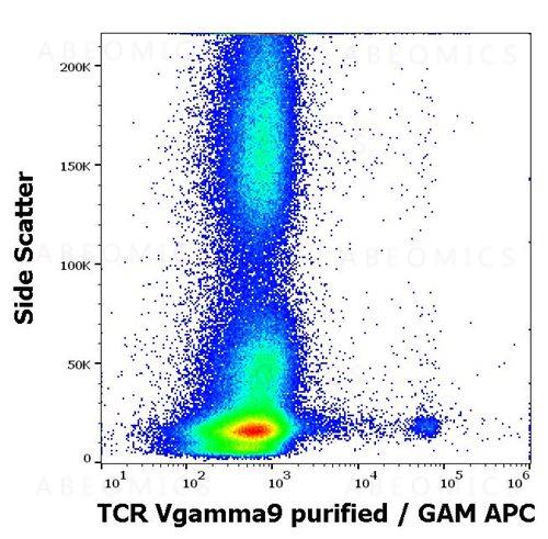 Figure 1: Flow cytometry surface staining pattern of human peripheral whole blood stained using anti-human TCR Vgamma9 (B3) purified antibody