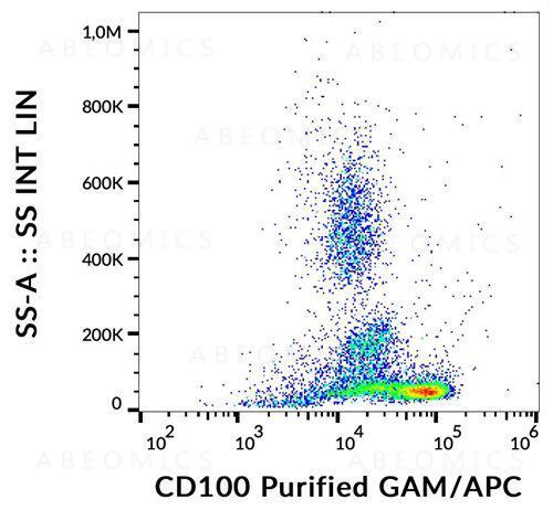 Figure 1 : Flow cytometry analysis (surface staining) of human peripheral blood with anti-CD100 (133-1C6) purified, GAM-APC.