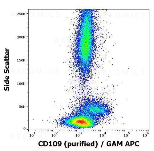 Figure 1 : Flow cytometry surface staining pattern of human peripheral blood stained using anti-human CD109 (W7C5) purified antibody (concentration in sample 1 µg/ml) GAM APC.