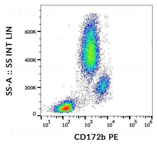 Figure 1 : Flow cytometry analysis (surface staining) of human peripheral blood cells with anti-human CD172b (B4B6) PE.