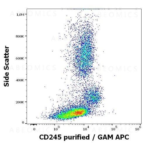 Figure 1: Flow cytometry surface staining pattern of human peripheral whole blood stained using anti-human CD245 (DY12) purified antibody (concentration in sample 1.67 μg/ml, GAM APC).