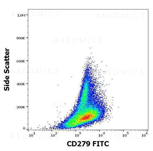 Figure 1 : Flow cytometry surface staining pattern of human PHA stimulated peripheral blood mononuclear cells stained using anti-human CD279 (EH12.2H7) FITC antibody (4 µl reagent per milion cells in 100 µl of cell suspension).