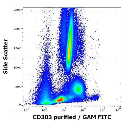 Figure 1: Flow cytometry surface staining pattern of human peripheral whole blood stained using anti-human CD303 (15E3) purified antibody (concentration in sample 3 μg/ml, GAM FITC).