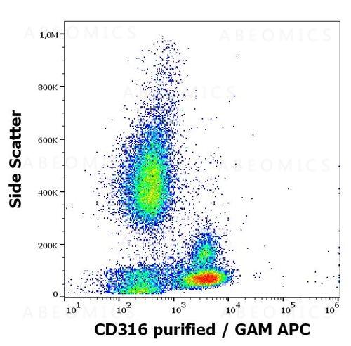 Fig1: Flow cytometry surface staining pattern of human peripheral whole blood stained using anti-human CD316 (8A12) purified antibody (concentration in sample 5 μg/ml, GAM APC).