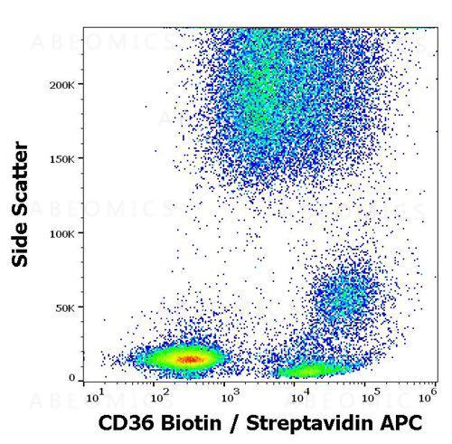 Figure 1 : Flow cytometry surface staining pattern of human peripheral whole blood stained using anti-human CD36 (TR9) Biotin antibody (concentration in sample 0,6 µg/ml, Streptavidin APC).