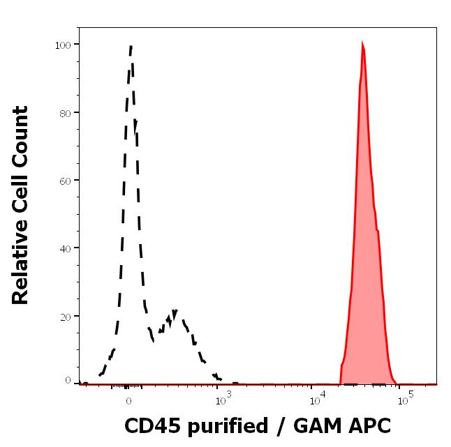 Figure 1: Flow cytometry surface staining pattern of human peripheral whole blood stained using anti-human CD45 (LT45) purified antibody (concentration in sample 2 μg/ml, GAM APC).