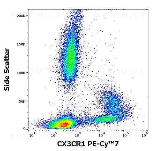 Fig 1: Flow cytometry surface staining pattern of human peripheral whole blood stained using anti-human CX3CR1 (2A9-1) PE-Cy™7 antibody (concentration in sample 0.56 μg/ml).
