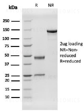 Fig. 1: SDS-PAGE Analysis Purified HHV8 Recombinant Mouse Monoclonal Antibody (HHV8/3606). Confirmation of Purity and Integrity of Antibody.