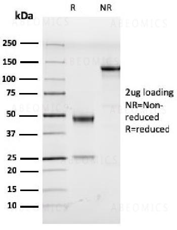 Fig. 1: SDS-PAGE Analysis Purified HHV8 Rat Monoclonal Antibody (LN53). Confirmation of Purity and Integrity of Antibody.