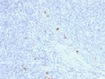 Figure 1: Formalin-fixed, paraffin-embedded Human Tonsil stained with IgG4 Mouse Recombinant Monoclonal Antibody (rIGHG4/1345).
