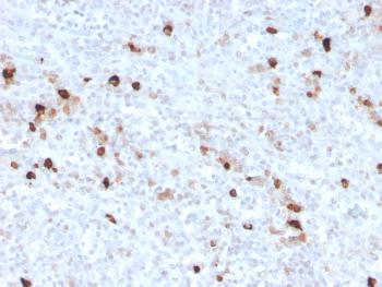 Fig. 1: Formalin-fixed, paraffin-embedded human spleen stained with IgM Recombinant Rabbit Monoclonal Antibody (IGHM/3776R).