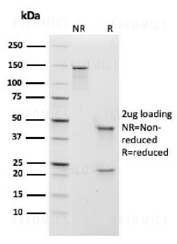 Fig. 1: SDS-PAGE Analysis Purified IgM Recombinant Mouse Monoclonal Antibody (rIGHM/1623). Confirmation of Purity and Integrity of Antibody.