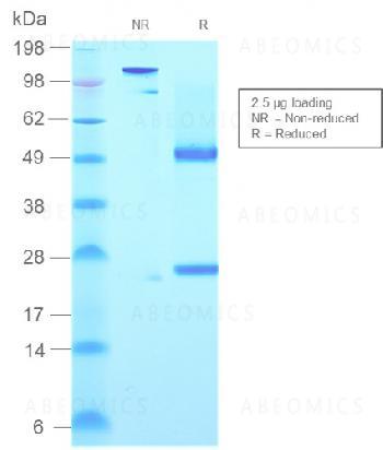 Fig. 1: SDS-PAGE Analysis Purified IgM Mouse Recombinant Monoclonal Antibody (rIGHM/2558). Confirmation of Purity and Integrity of Antibody.