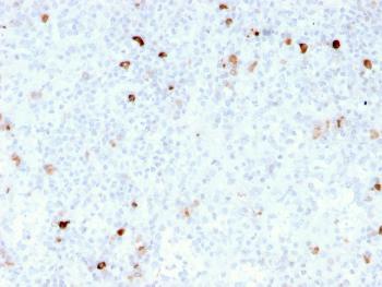 Fig. 1: Formalin-fixed, paraffin-embedded human tonsil stained with IgM Recombinant Mouse Monoclonal Antibody (rIM260).