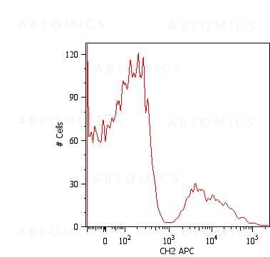 Figure 1: Surface staining of human peripheral blood cells with anti-human IgM (CH2) APC.Cells in the lymphocyte gate were used for analysis.