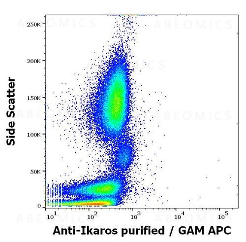 Figure 1: Flow cytometry intracellular staining pattern of human peripheral whole blood stained using anti-Ikaros (4E9) purified antibody (concentration in sample 8 μg/ml, GAM APC).