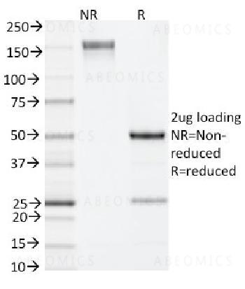 Fig. 1: SDS-PAGE Analysis Purified IL-4 Rat Monoclonal Antibody (11B11). Confirmation of Integrity and Purity of Antibody.