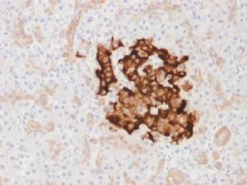 Figure 1: Formalin-fixed, paraffin-embedded human Pancreas stained with Insulin Rabbit Recombinant Monoclonal Antibody (IRDN/1980R).