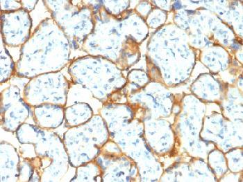 Fig-1: Formalin-fixed, paraffin-embedded human Placenta stained with Insulin Receptor Rabbit Recombinant Monoclonal Antibody
