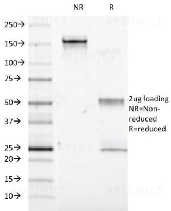 Fig. 1: SDS-PAGE Analysis Purified Interferon alpha-1 Mouse Monoclonal Antibody (2-48). Confirmation of Purity and Integrity of Antibody.