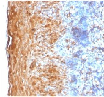 Figure 1: Formalin-fixed, paraffin-embedded human Tonsil stained with Involucrin Rabbit Recombinant Monoclonal Antibody (IVRN/2113R).