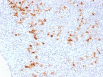 Fig. 1: Formalin-fixed, paraffin-embedded human Tonsil stained with Kappa Light Chain Mouse Monoclonal Antibody (KLC1278).