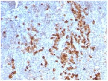 Figure 1: Formalin-fixed, paraffin-embedded human Tonsil stained with Kappa Light Chain Mouse Recombinant Monoclonal Ab (rKLC709).