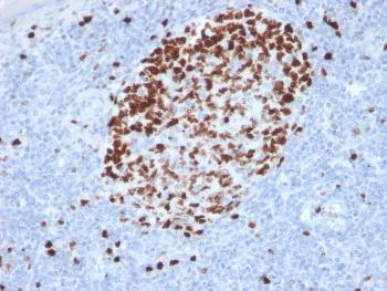 Fig. 1: Formalin-fixed, paraffin-embedded human Tonsil stained with Ki67-Monospecific Mouse Monoclonal Antibody (MKI67/2462).