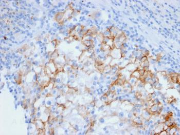 Fig.1: Formalin-fixed, paraffin-embedded human Renal Cell Carcinoma stained with Cadherin 16 Mouse Monoclonal Antibody (CDH16/2448).