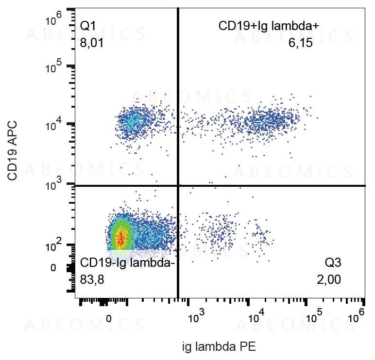 Figure 1: Surface staining of lambda light chains in human peripheral blood with anti-lambda light chains (1-155-2) PE.