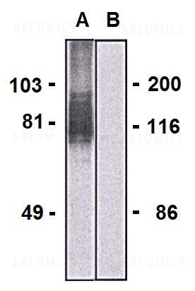 Figure 1: Western blotting analysis of LARGE1 in HEK293-LARGE1 transfectants (A) and HEK293 cells (B) using mouse monoclonal antibody (clone LARGE-02).