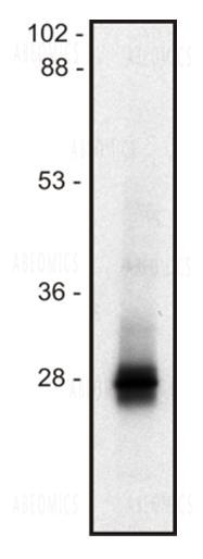 Figure 1: Western blot of mouse thymocyte lysate (1% SDS); non-reduced sample, immunostained by mAb mLIME-05 and goat anti-mouse IgG (H+L)-HRP conjugate.