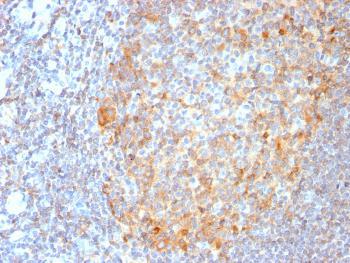 Fig.1: Formalin-fixed, paraffin-embedded human Tonsil stained with MALT1 Recombinant Rabbit Monoclonal Antibody (MT1/3159R).