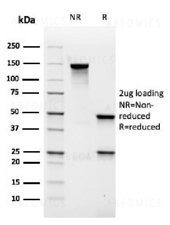 Fig.1: SDS-PAGE Analysis Purified MALT1 Recombinant Mouse Monoclonal Antibody (rMT1/410). Confirmation of Purity and Integrity of Antibody.